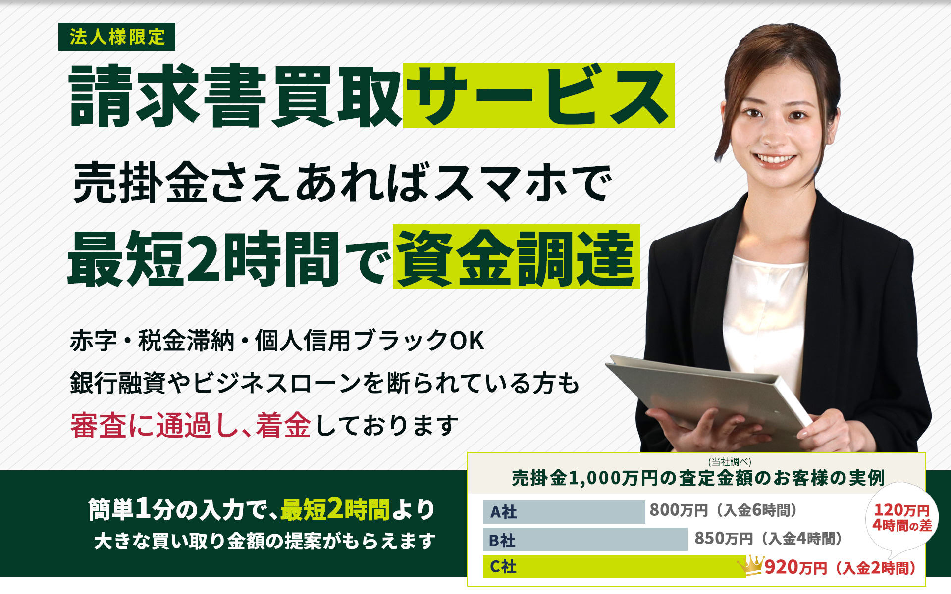最速即日で早期現金化できる資金調達です。